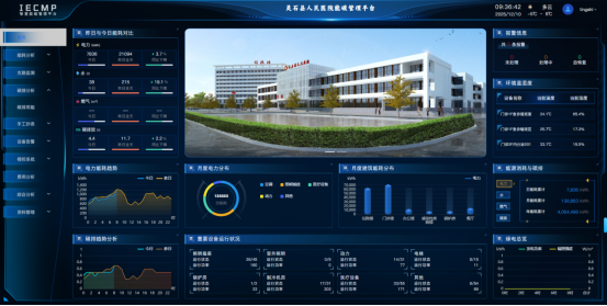 在与灵石县人民医院的合作中,中启能秉持“诊断精准、技术适用、运行稳定、效益可测”的原则,分阶段实施了一系列节能改造: 1.智慧能碳管理平台搭建为院方建立了基于AI、物联网等技术的智慧能碳管理平台,部署400+智能采集终端及边缘智控设备。实现电、水、热等能耗的实时采集、统计分析与管理可视化,为精细化管理与持续优化提供数据支撑。该平台为中启能自研产品,采用物联网、云计算、精细计量、数字传感等先进技术,能够实时、全面、准确地采集水、电、燃气、蒸汽等各种能耗数据,具有在线能耗/碳排放分类计量分析、运行管理、能耗监测、环境监测、电力安全监测、电能质量监测、数据分析、故障预/报警、动态分析能耗等功能,为持续优化节能方案,实时准确的核算节能量、碳排放量,防止管网跑冒滴漏,提高能源效率,提供科学有效的实施依据。